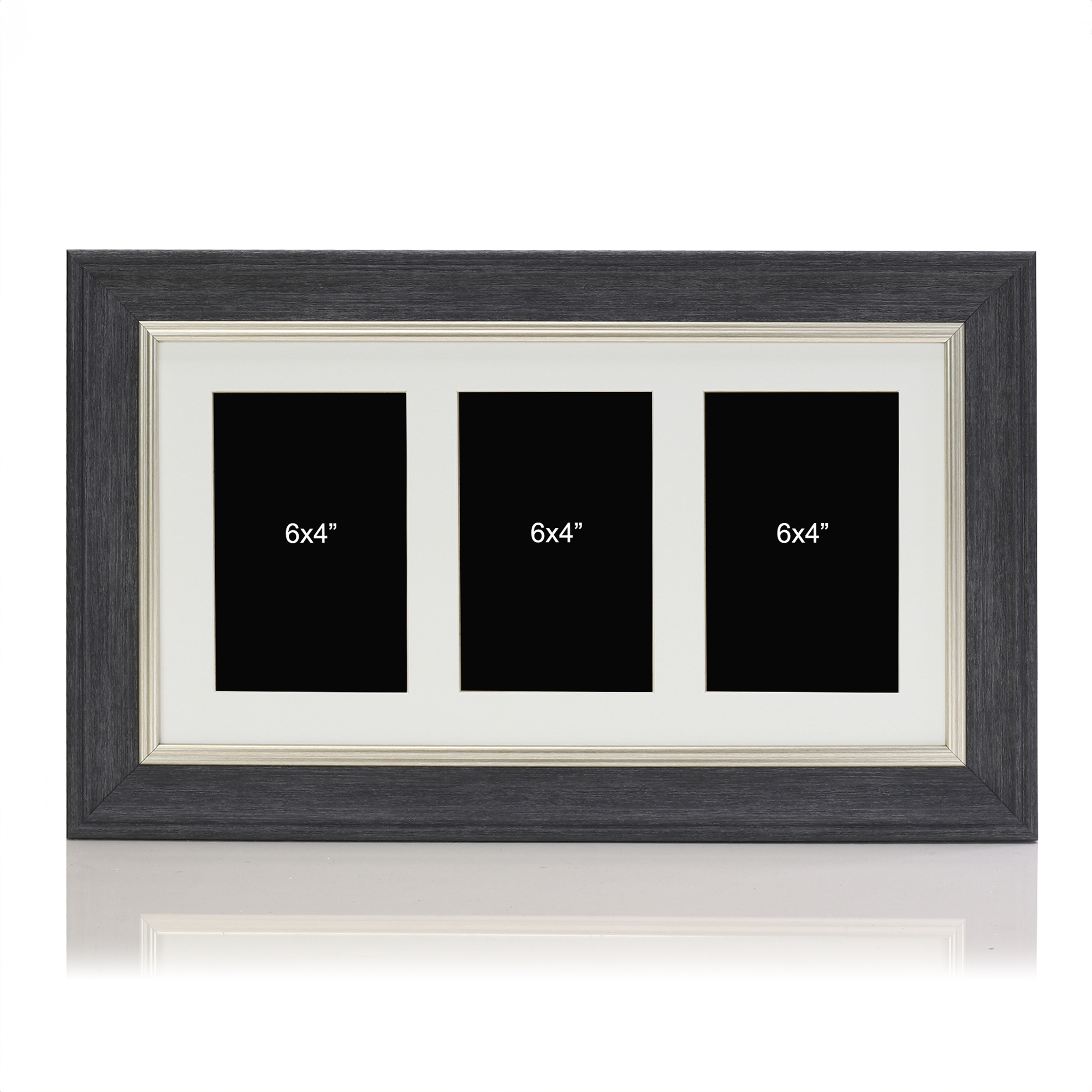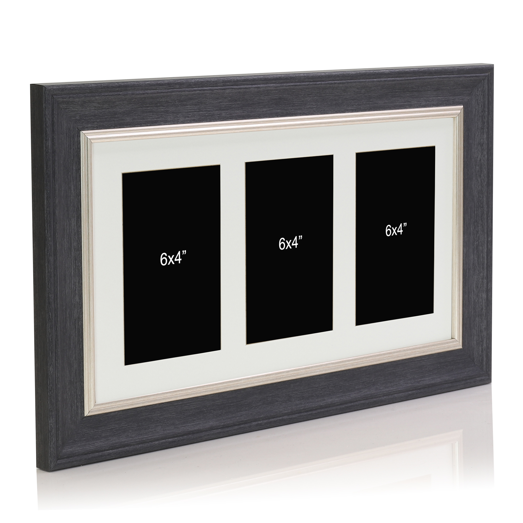 Dark Grey Multi Aperture Picture Photo Frame, Fits 3 6x4" Images, Perfect Collage Multi Opening Display Frame