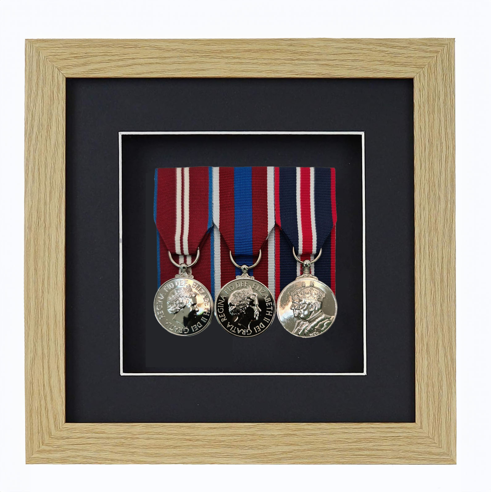 Oak Effect Court Mounted Medal Frame For 3 War, Military/Sports Medals With Black or White Mount