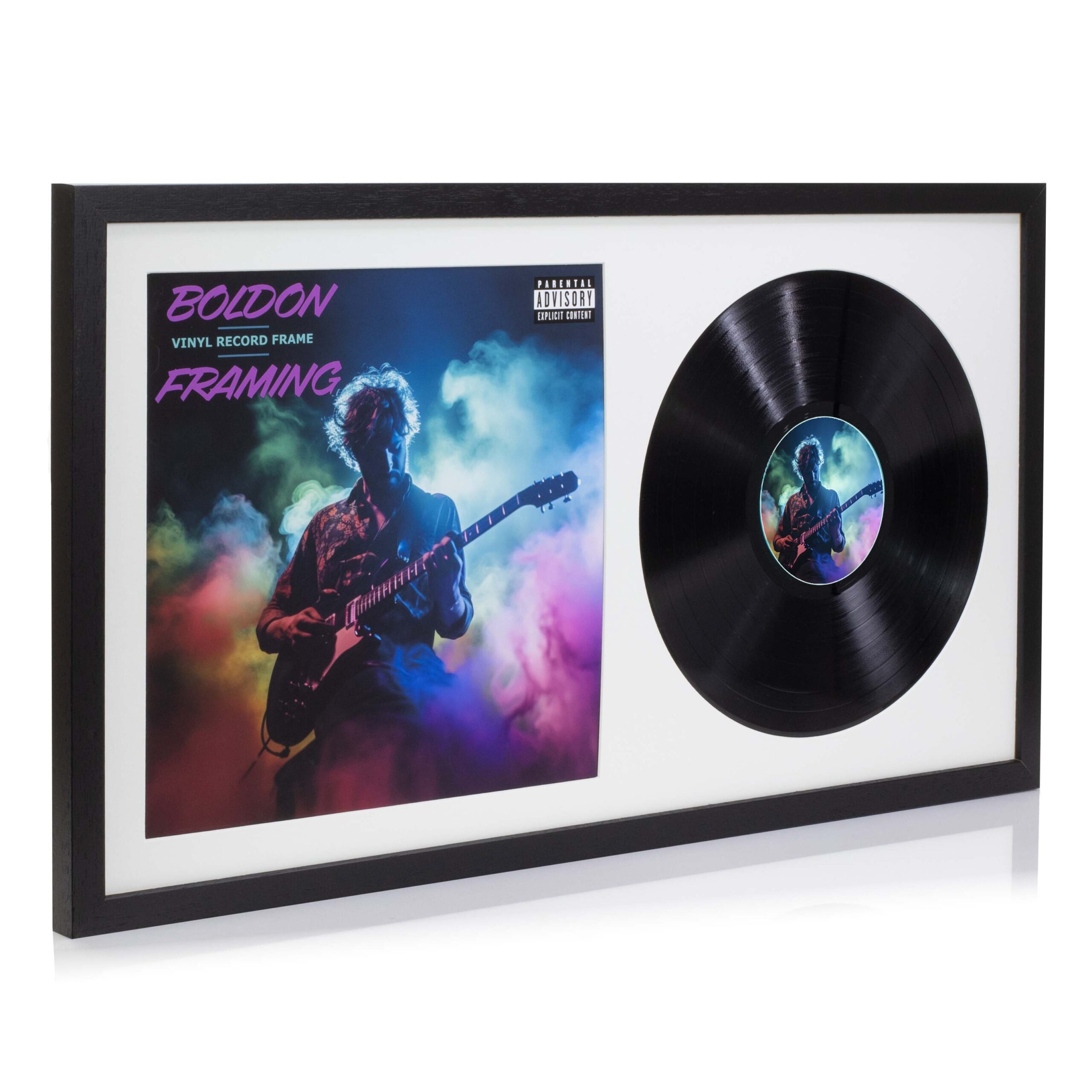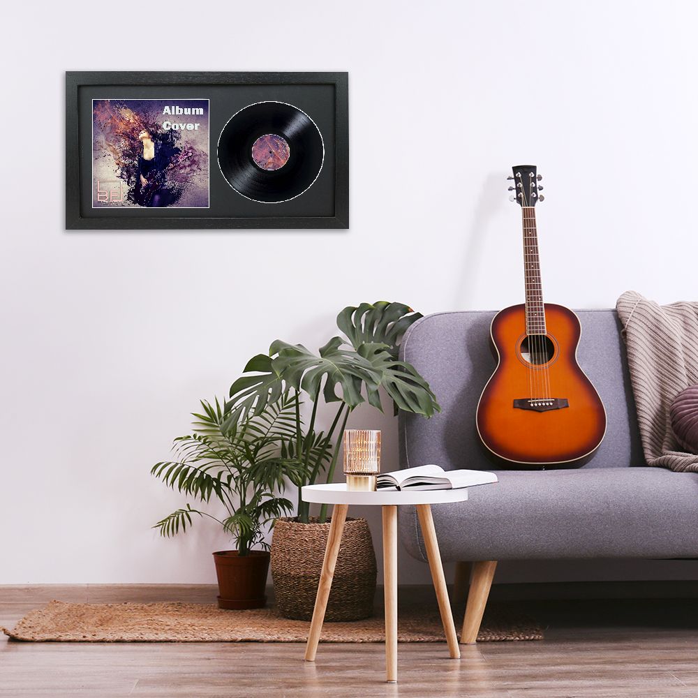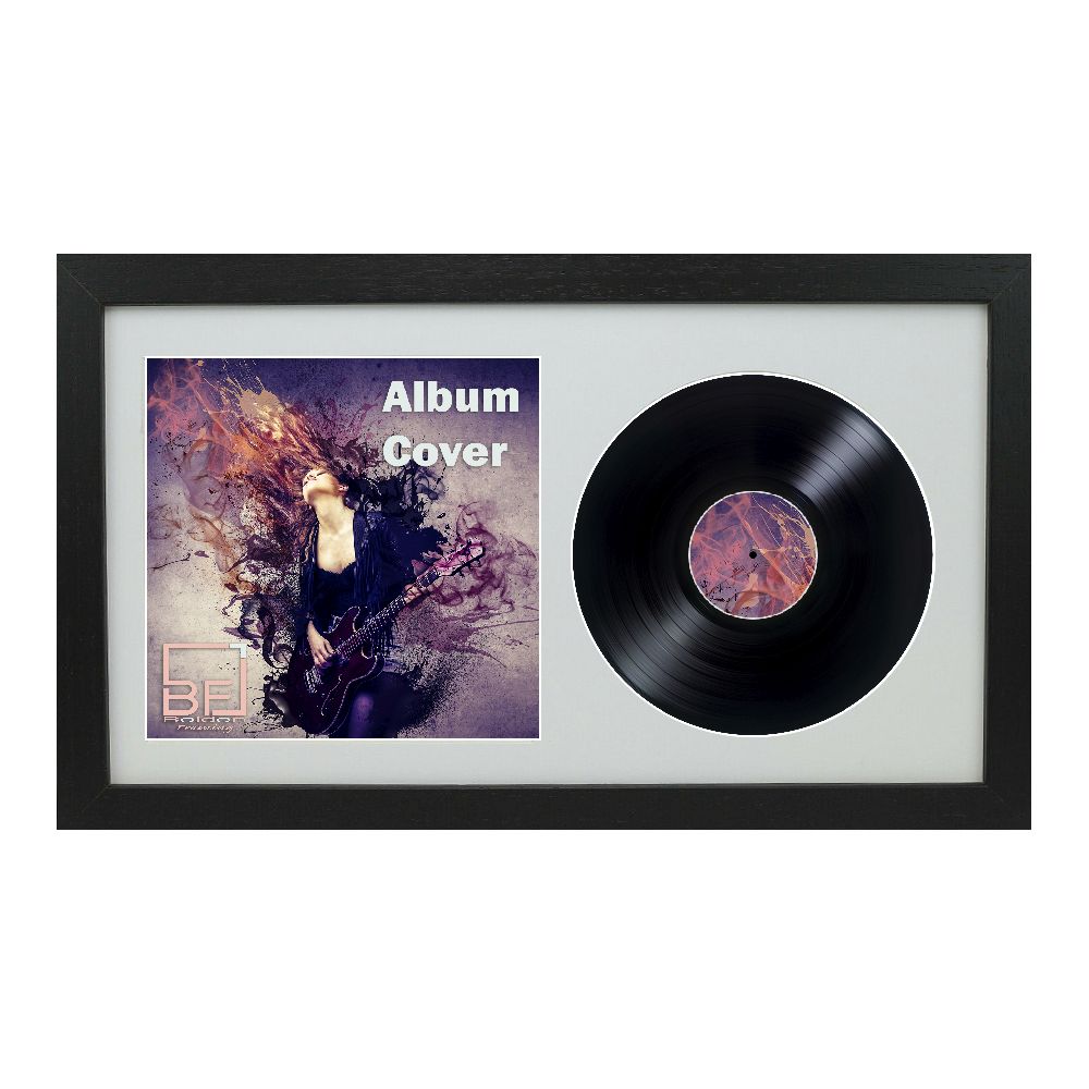 Black 12 Inch Vinyl Record and Album Cover Display Frame with Black or White Mount