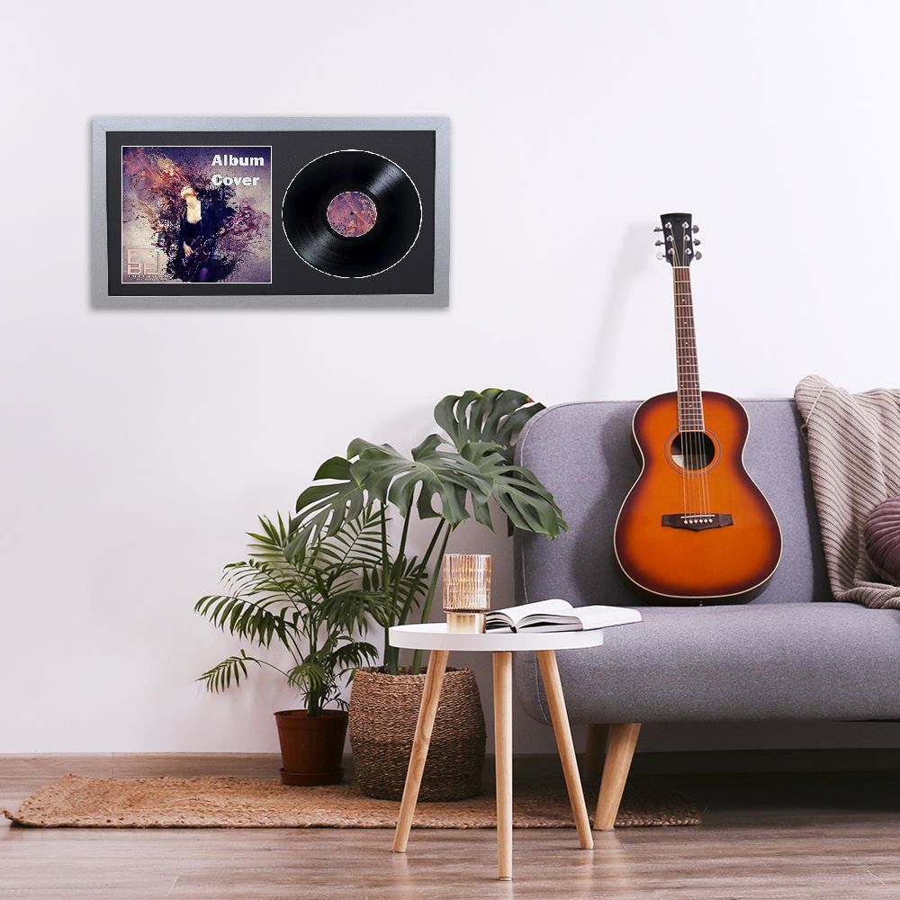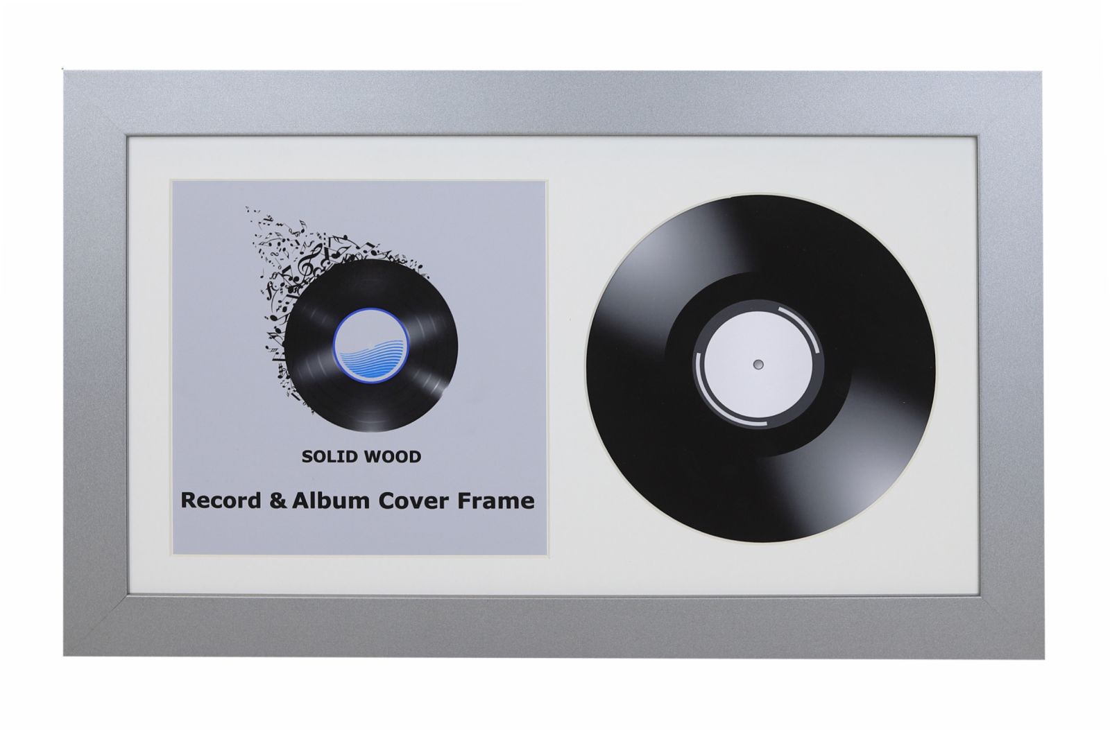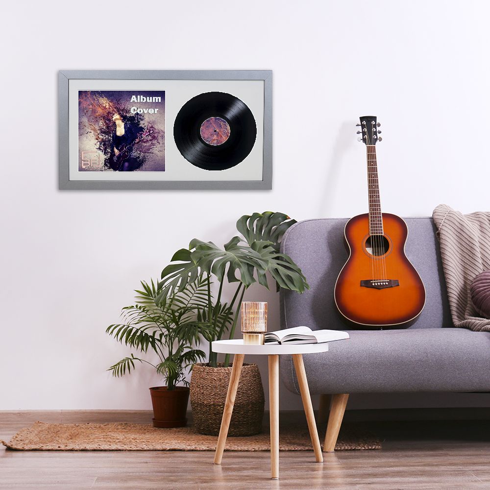 Silver 7 Inch Vinyl Record and Album Cover Display Frame with Black or White Mount